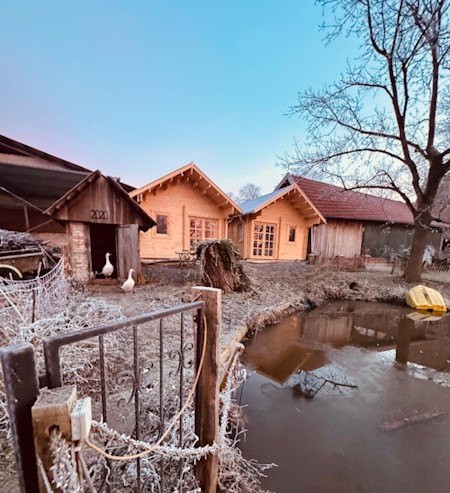 Die Apartments Lakeview und Goosebarn am kleinen Teich mit Terasse für 4 Personen.